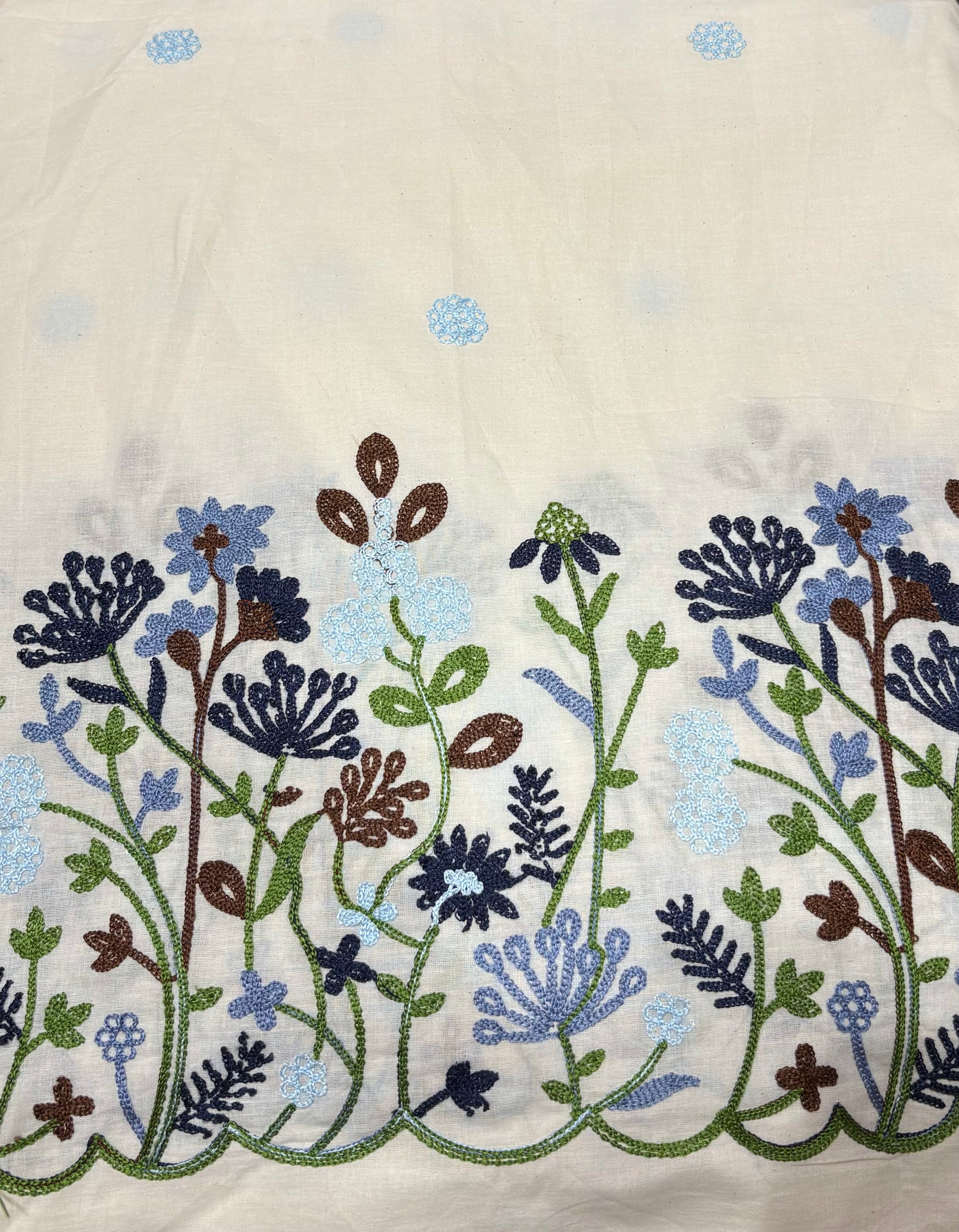Floral Thread Work on Kora Cotton – Delicate Craftsmanship Meets Breezy Elegance