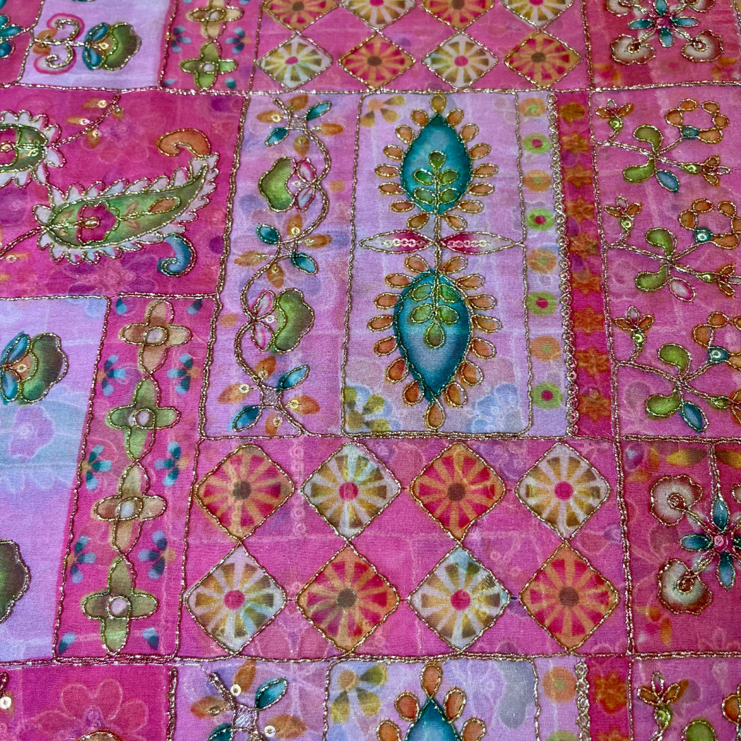 Make a statement with our stunning Organza with Multi-Color Highlights in pink. This luxurious fabric features a beautiful combination of vibrant hues, with a striking pink highlight that adds depth and charm to the overall design. The soft, lightweight texture of organza, combined with the multi-colour highlights, creates a sophisticated and elegant look, perfect for any occasion.