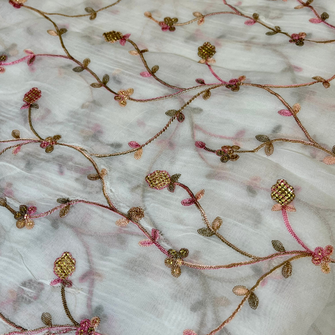 Add a touch of elegance and sparkle with our Organza with Sequin Work, featuring intricate pink and peach-coloured sequins. This premium organza fabric is perfect for creating stunning, eye-catching outfits for special occasions. The delicate sequin work enhances the fabric’s beauty.