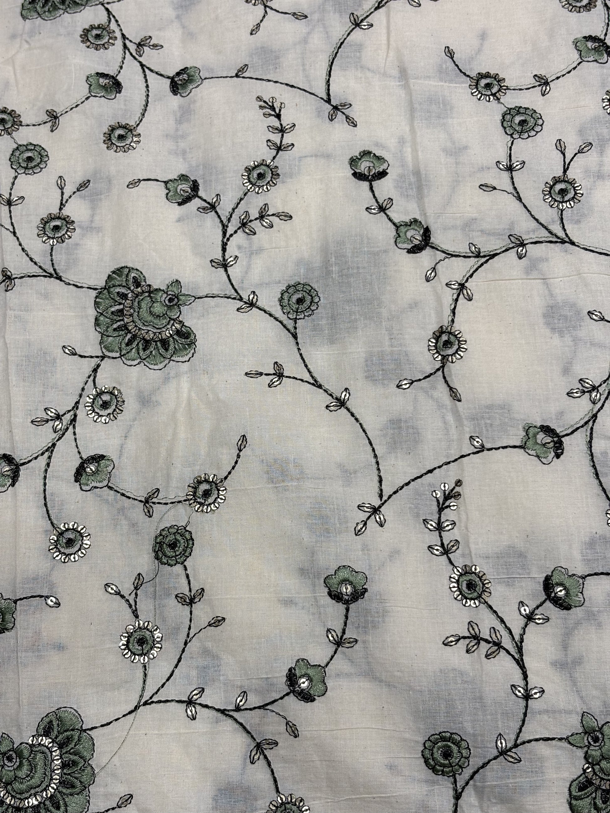 Threadwork on Kora Cotton is a beautiful combination of delicate embroidery on a lightweight, sheer, and slightly crisp fabric. Kora Cotton, often referred to as "Raw Cotton," is an unprocessed form of cotton that retains its natural texture and breathability, making it an excellent base for intricate embroidery.
